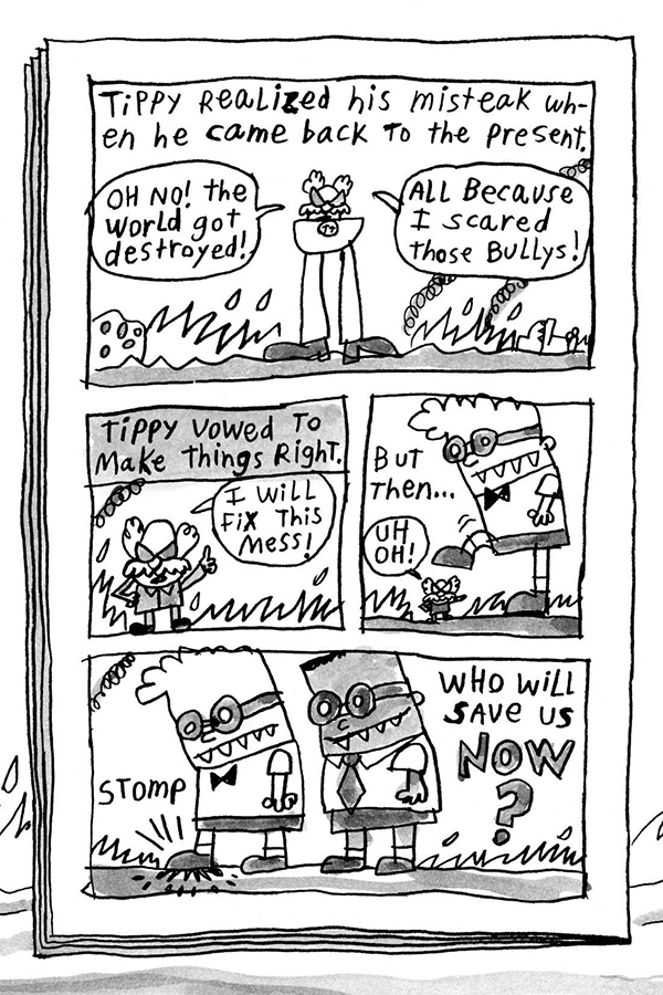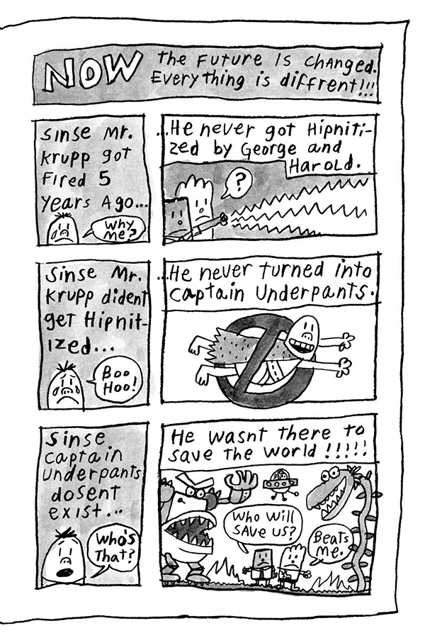 But why, might you ask, didn't the amazing Captain Underpants save the boys from this frightening fate? Because Tippy Tinkletrousers and his time-traveling hijinks prevented George and Harold from creating Captain Underpants in the first place! Now, having changed the course of human history forever, they'll have to figure out a way to CHANGE IT BACK!