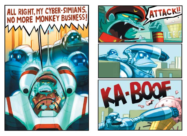 They play, study, and even get in trouble together, and they always watch out for each other. That's what friends are for! In this book, Ricky and his Mighty Robot meet a mean little Martian named Major Monkey who plans to take over Earth with his monstrous Mecha-Monkeys. When Major Monkey plays a trick on Ricky's Robot, it's up to Ricky to rescue his friend and stop Major Monkey from menacing mousekind!