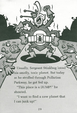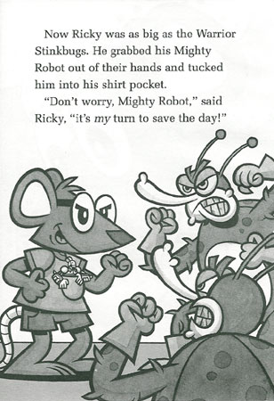 Ricky and his Robot are hoping to have a little fun with Lucy's pet Jurassic Jackrabbits, but when they get there, Lucy makes them play princess with her instead! What could be worse? An invasion of Stupid Stinkbugs from Saturn, that's what! Smelly Sergeant Stinkbug has arrived on Earth with a plan to kidnap its ruler, and Princess Lucy fits the bill. Now it's up to Ricky and his Mighty Robot to plug their noses and send those stinkers back into space!